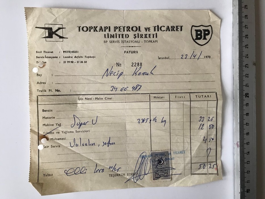 135. Topkapı Petrol ve Ticaret Şirketi Pullu Fatura/1970